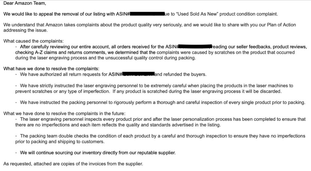 We suggest resolving this by reaching out to the rights owner to see if they can retract their claim after the issue is fixed. Providing a clear Letter of Authorization (LOA) to Amazon is also a great way to show you have the proper rights to sell. Often, a professional email explaining that the infringement was accidental leads to a retraction quickly.
