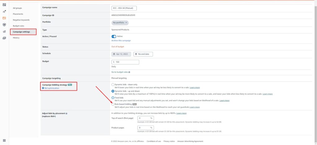 Navigate to the campaign settings and pick between Fixed, Down Only, or Up and Down. This selection dictates how aggressively Amazon will adjust your base bid during the live auction. It is based on the likelihood of the customer making a purchase.